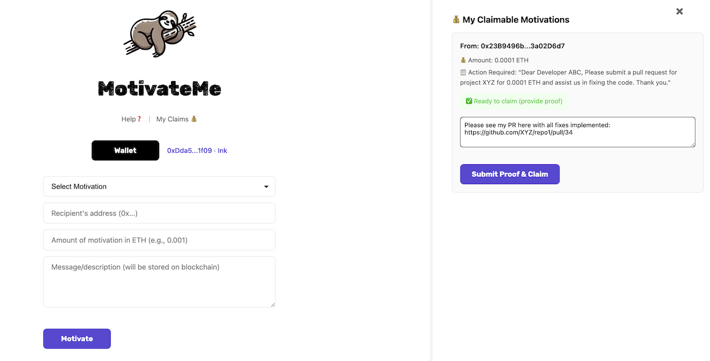 MotivateMe dApp