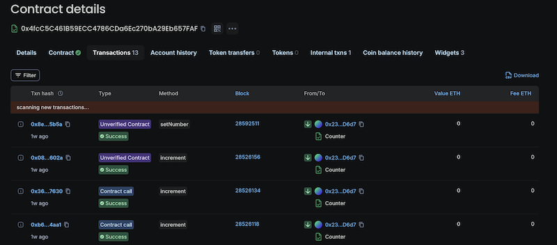Details of this transaction can be found in the CLI as well as in the blockchain explorer: https://explorer.inkonchain.com/address/0x4fcC5C461B59ECC4786CDa6Ec270bA29Eb657FAF?tab=txs (see the increment in the Method column)