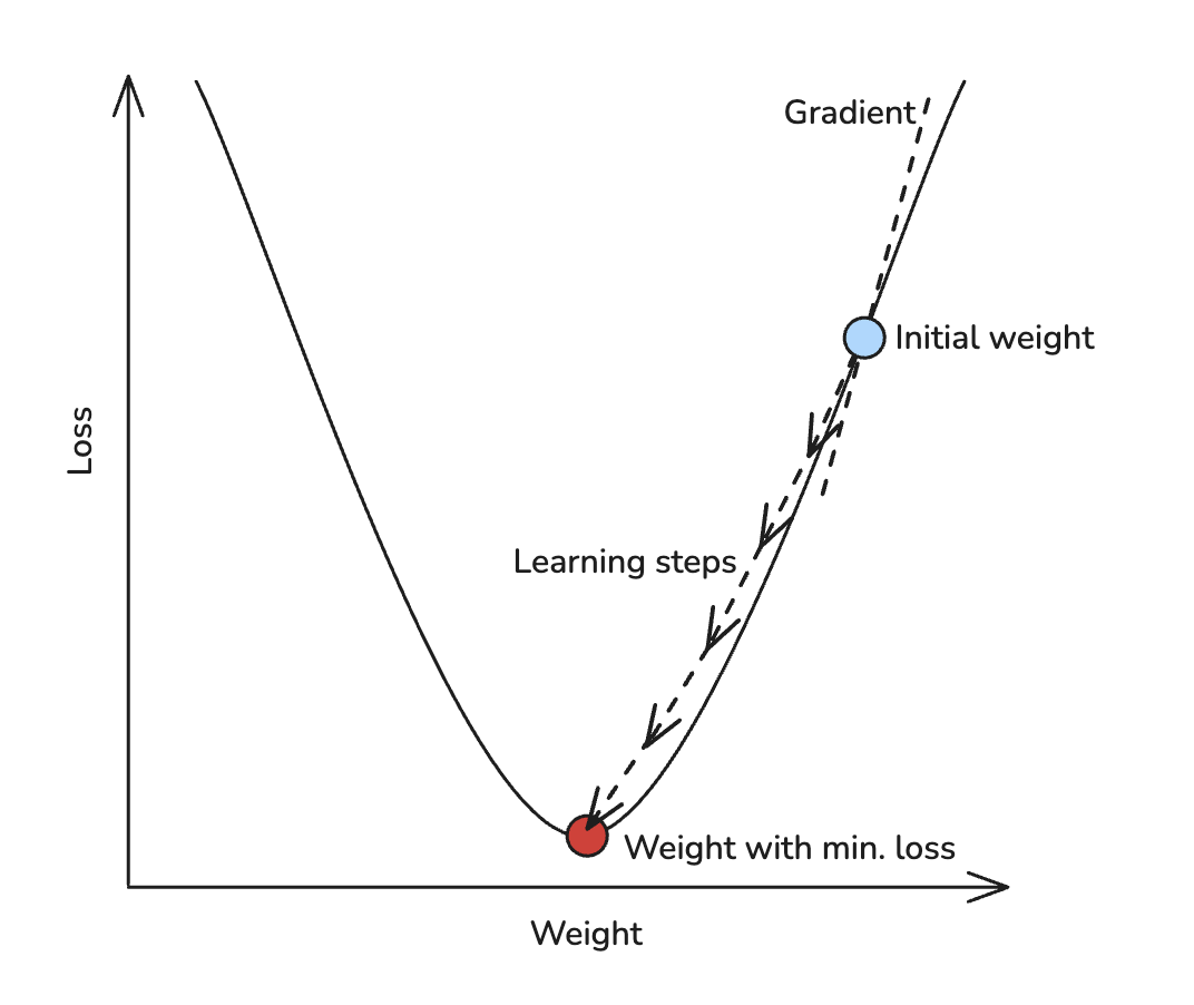 We can keep guessing and adjusting until the loss (the error in our predictions) gets low enough. But if we are working with large datasets, that trial-and-error approach could take forever.